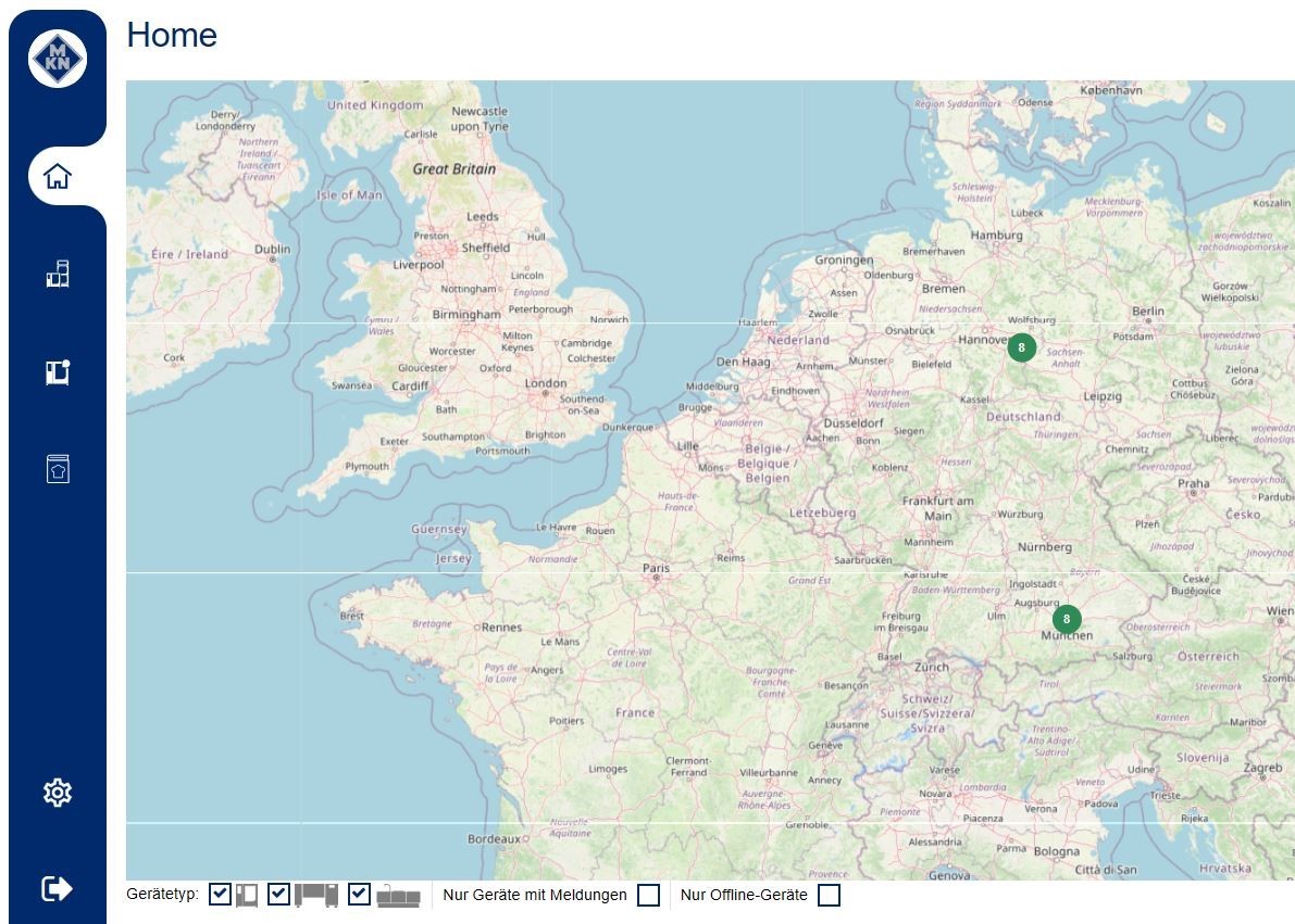 The web interface is intuitive and self-explanatory to operate. All elements can be customised – from colour and logos to date, time zones and units of measurement. A comprehensive location overview lists all appliances that are easily shown on a map. The location list can be filtered according to appliance type and functions. It is also possible to integrate your own kitchen map or individual sketches, in which you can position the appliances flexibly.