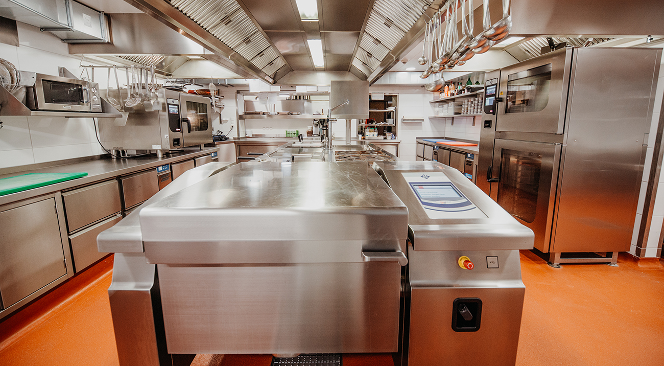 Um dies zu meistern und auch beste Qualität auf den Teller zu bringen, arbeitet das Küchenteam neben dem FlexiChef® noch mit MKN Kombidämpfern und einem zentralen Küchenblock mit individueller Ausstattung, um die Laufwege so kurz wie möglich zu halten. Das Ergebnis ist eine gehobene, gut bürgerliche Küche mit Zutaten aus der Region, z.B. mit dem Gemüse vom Bauern um die Ecke.